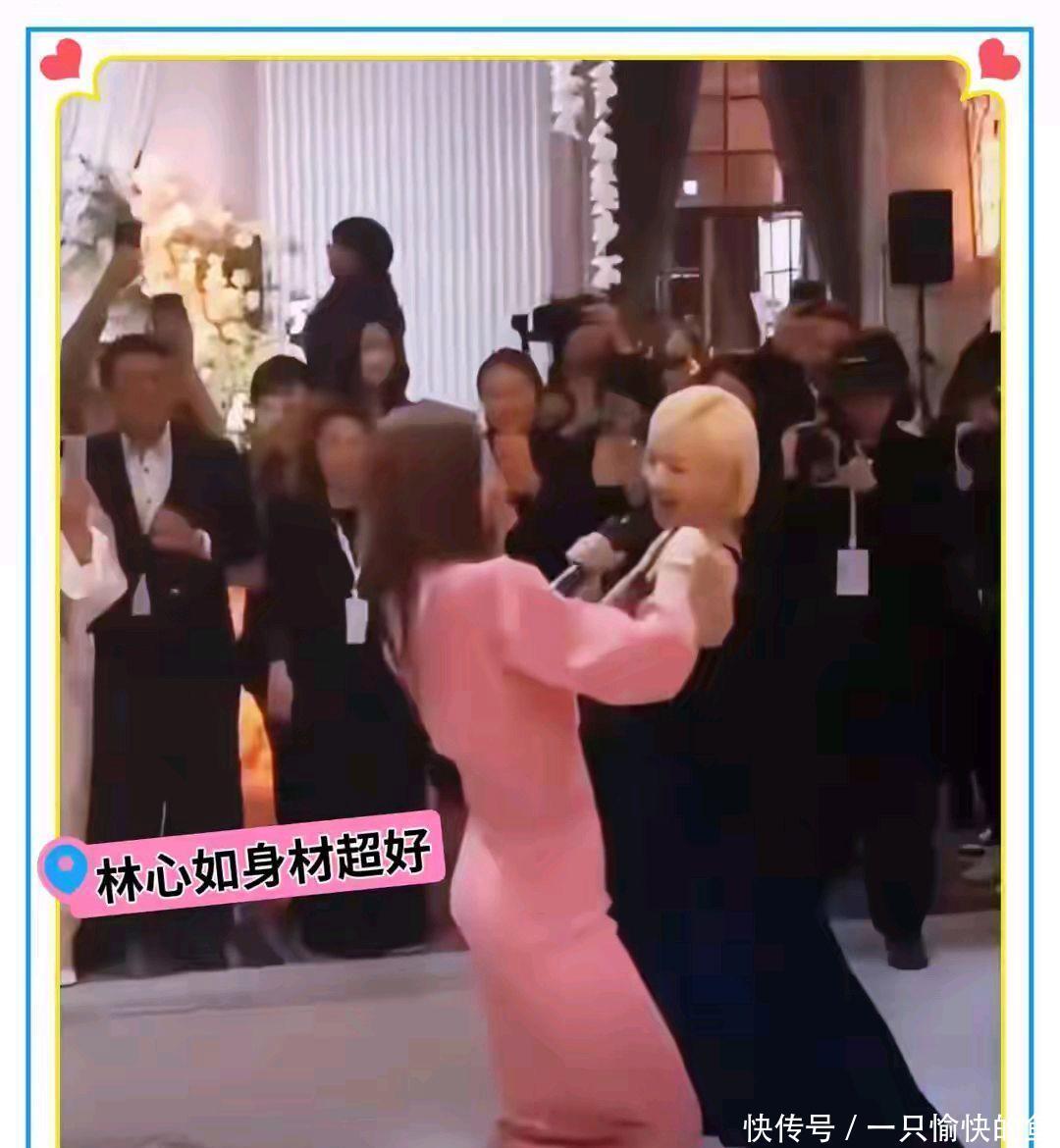 婚礼吃饭的时候,有人唱歌。唱的是首热闹的曲子。Lulu在台上,她让林心如来跳舞。林心如没犹豫,站起来就过去了。她那天穿了条粉裙子。裙子是长的,贴在身上。颜色不扎眼,样子也简单。人在台上一站,身段就看清楚了。